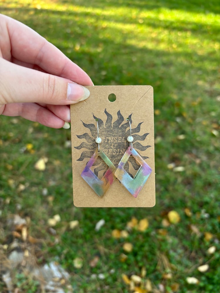 made with silver plated surgical grade steel findings & hand-poured resin charms.